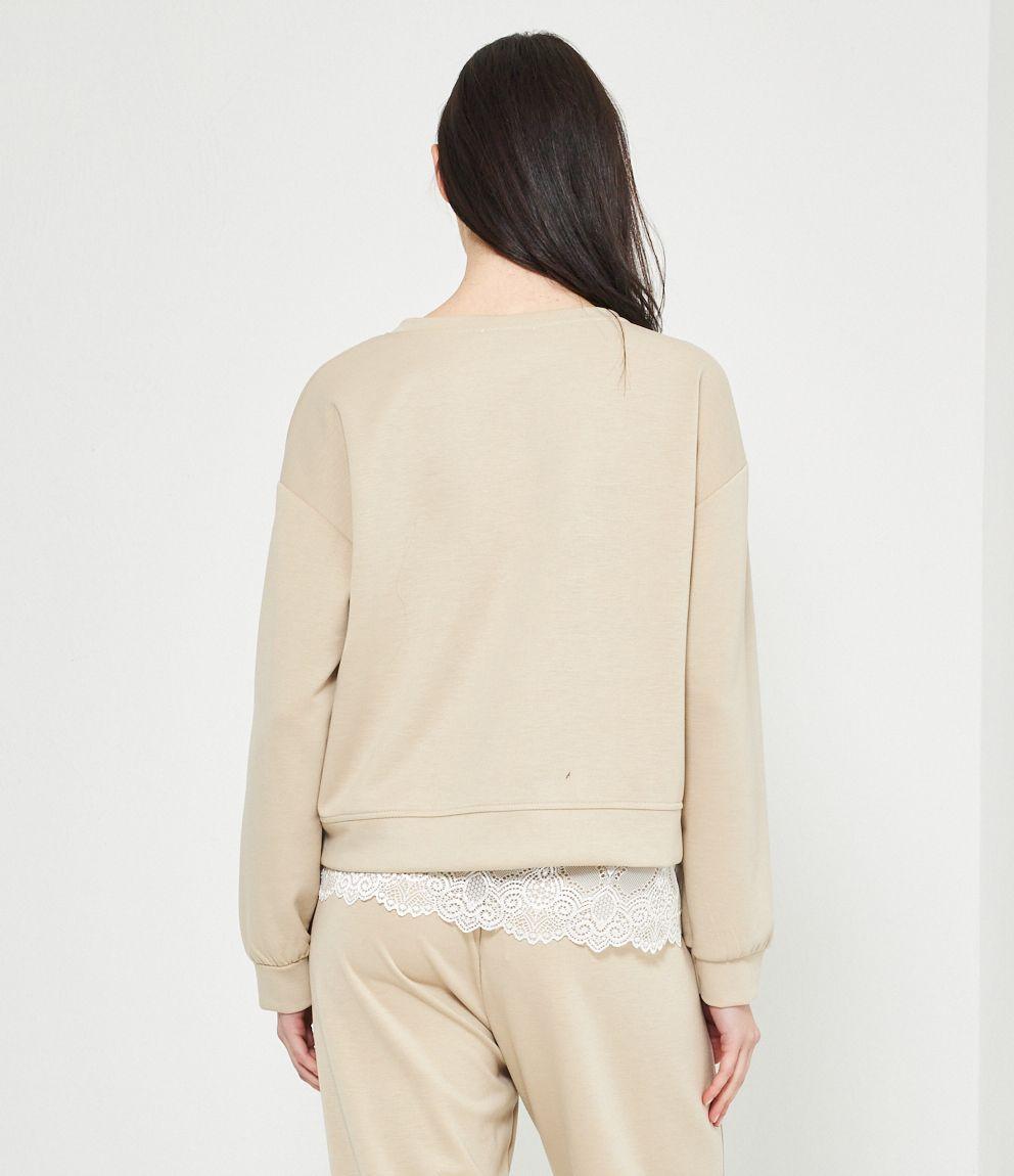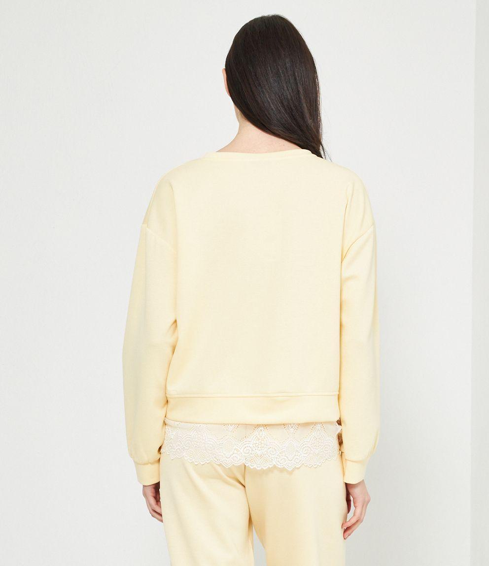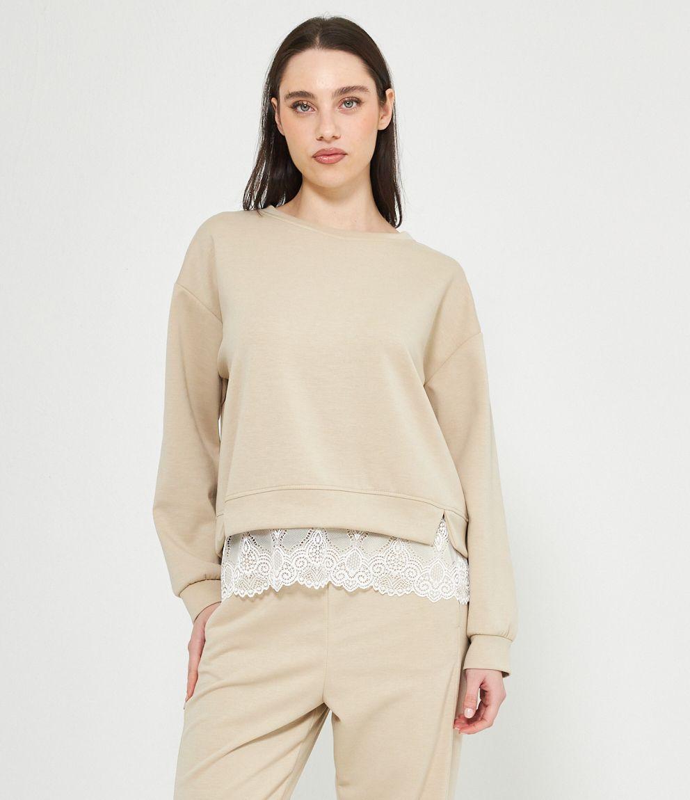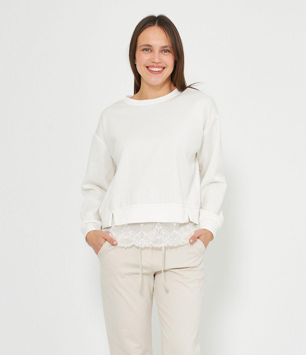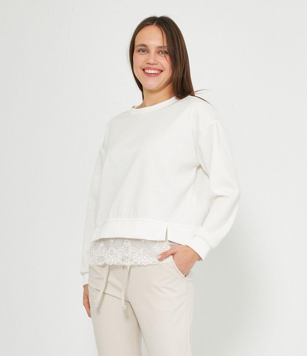 Felpa modello comfy con ricamo sul fondo e scollo tondo.