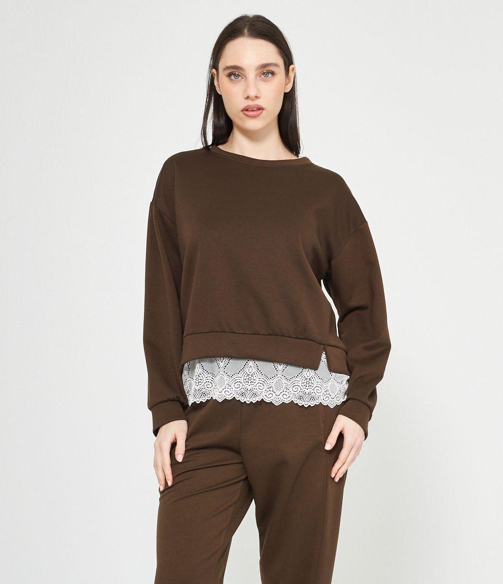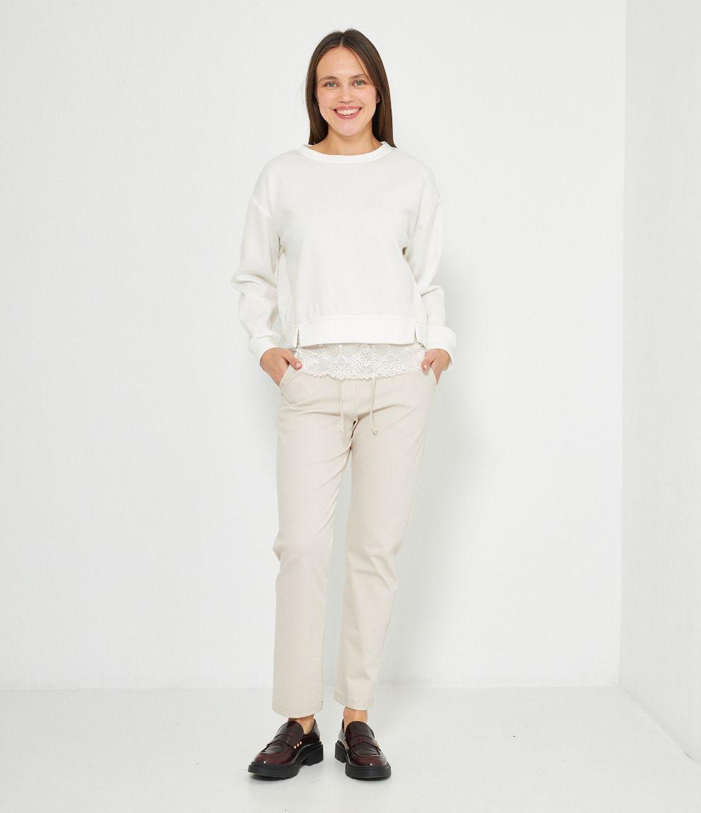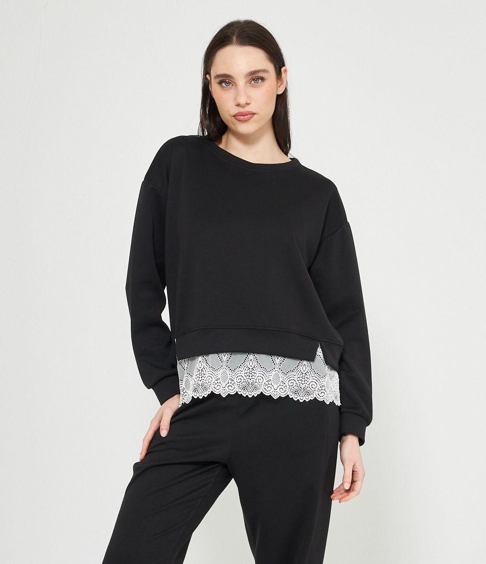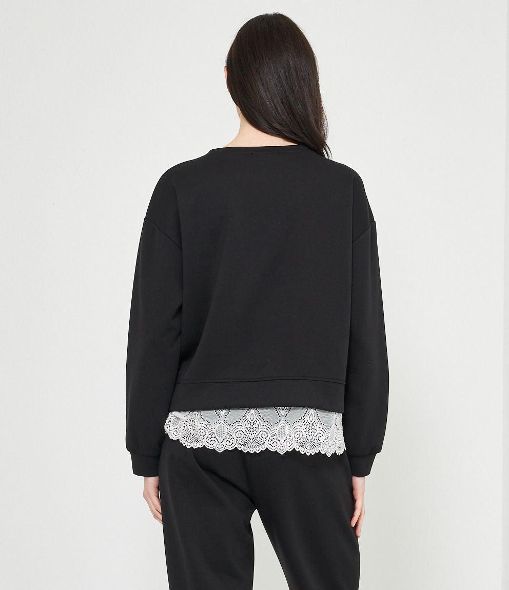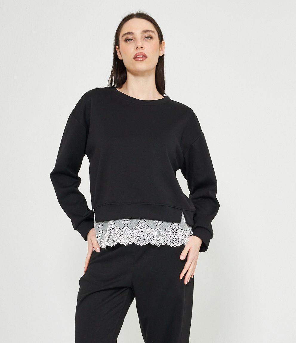 Felpa modello comfy con ricamo sul fondo e scollo tondo.