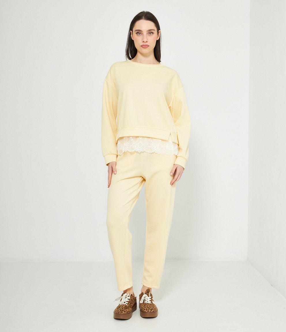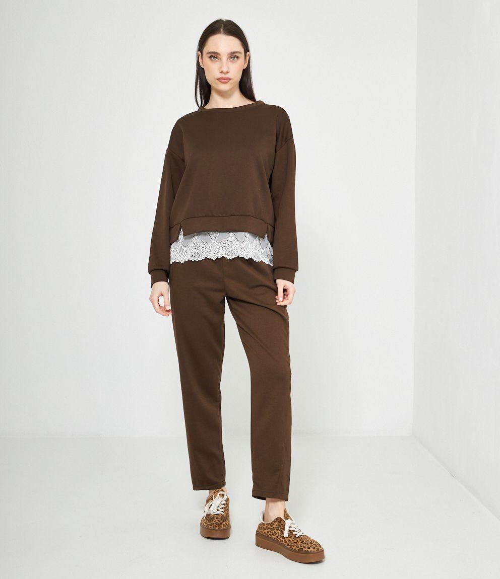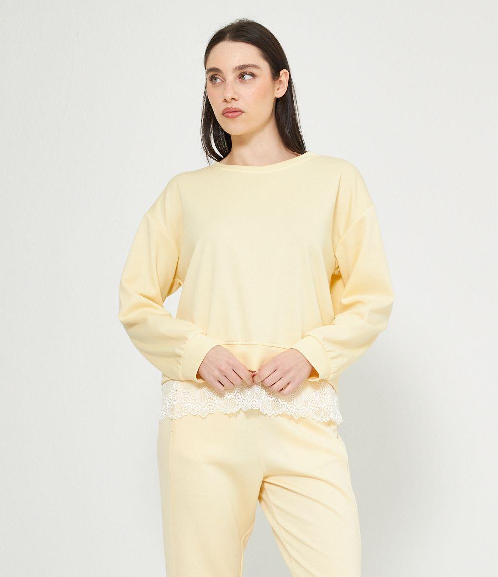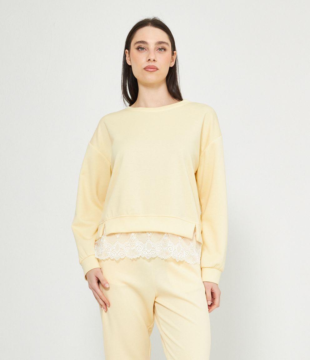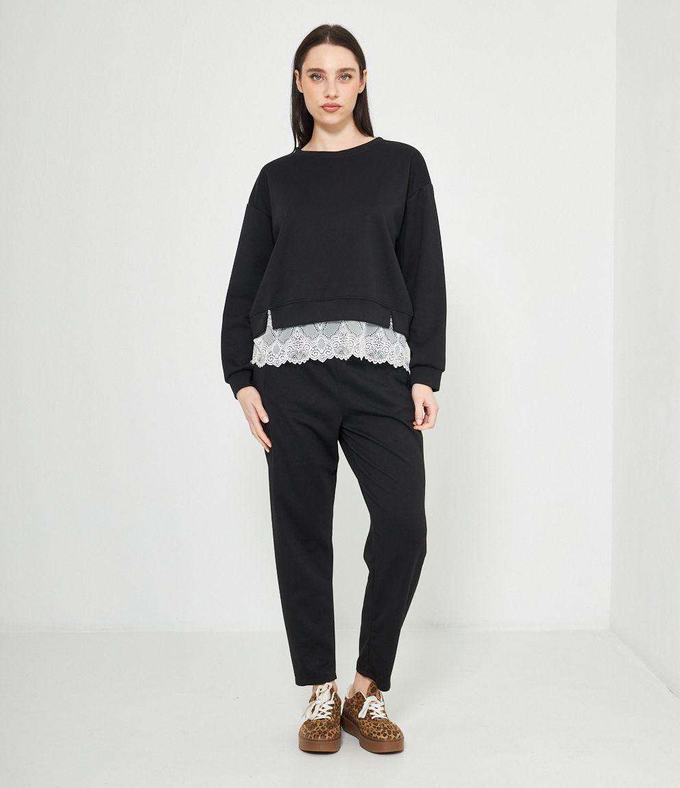Felpa modello comfy con ricamo sul fondo e scollo tondo.