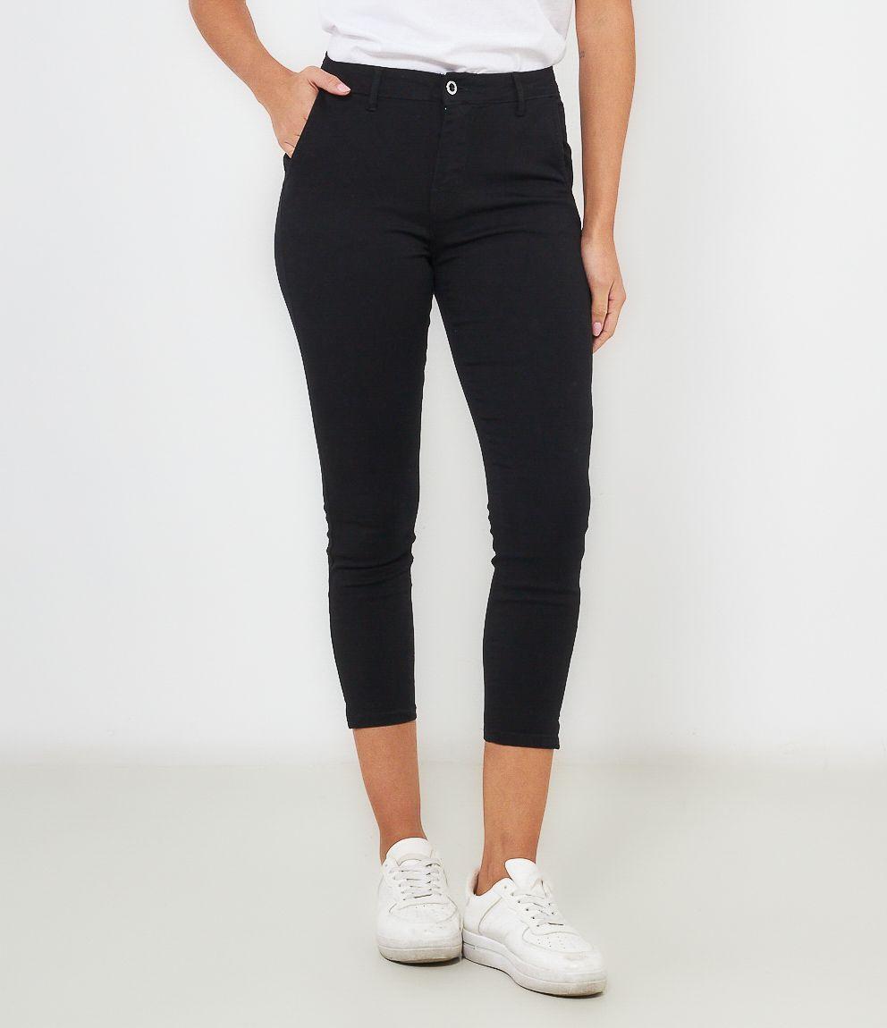 Pantaloni modello capri con spacchi sul fondo, tasche all' americana e chiusura con zip e bottone.