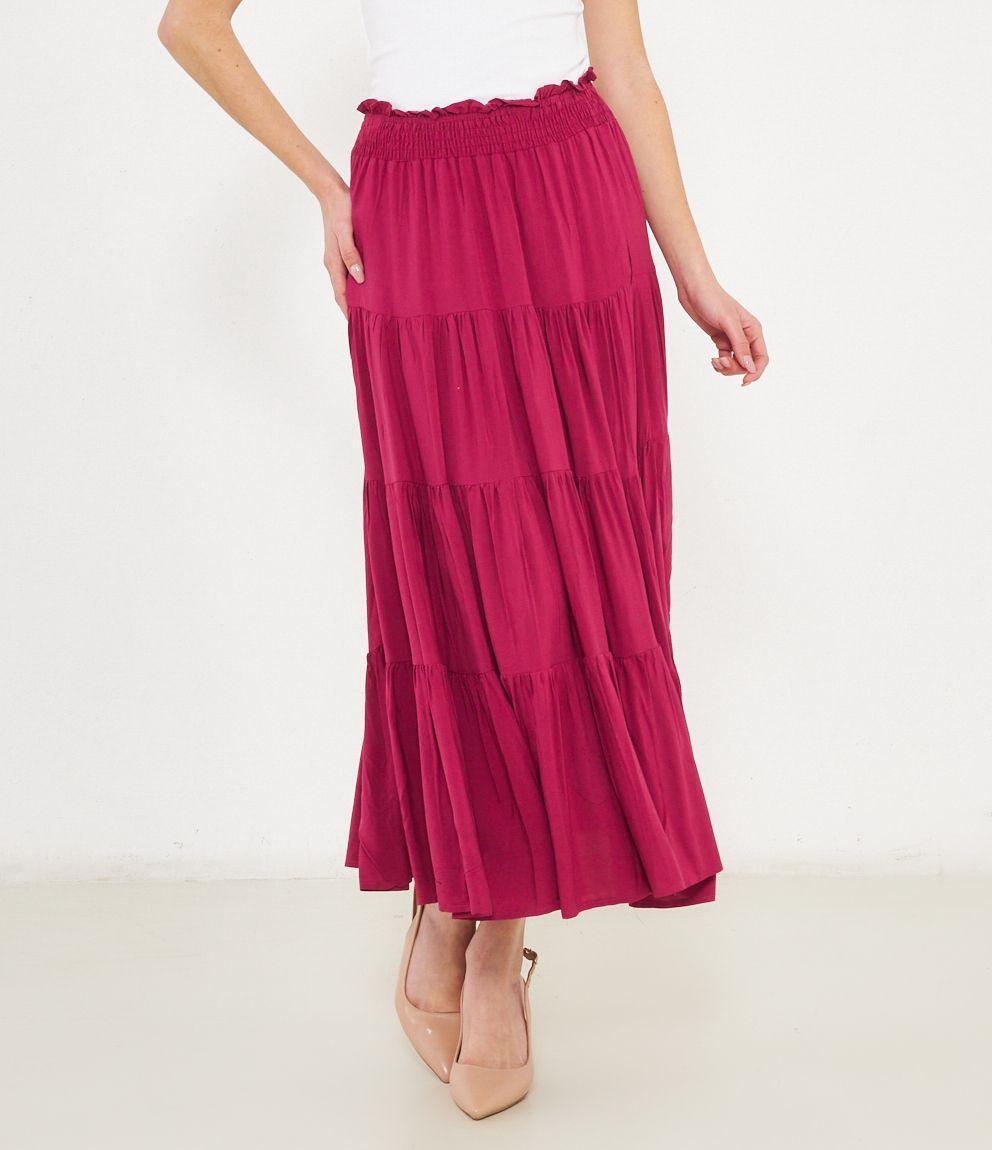 Gonna in viscosa modello maxi a balze con punto smock in vita.