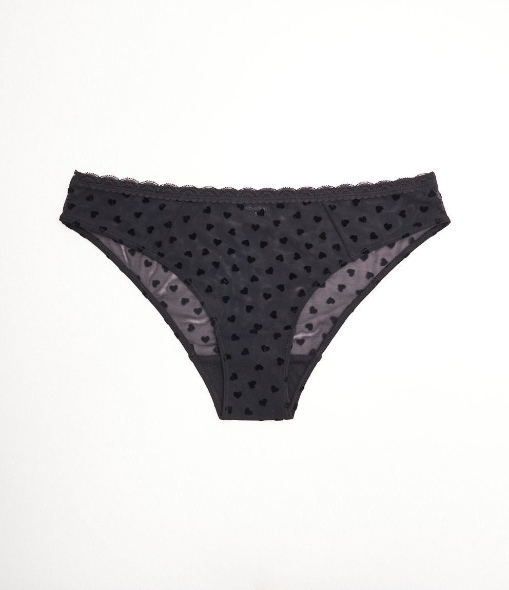 Slip modello classico in microrete con cuori a rilievo e bordo in pizzo.