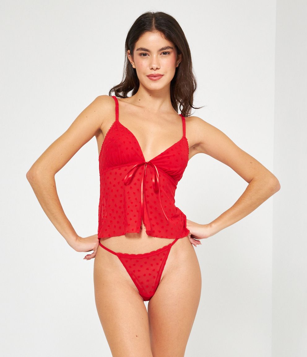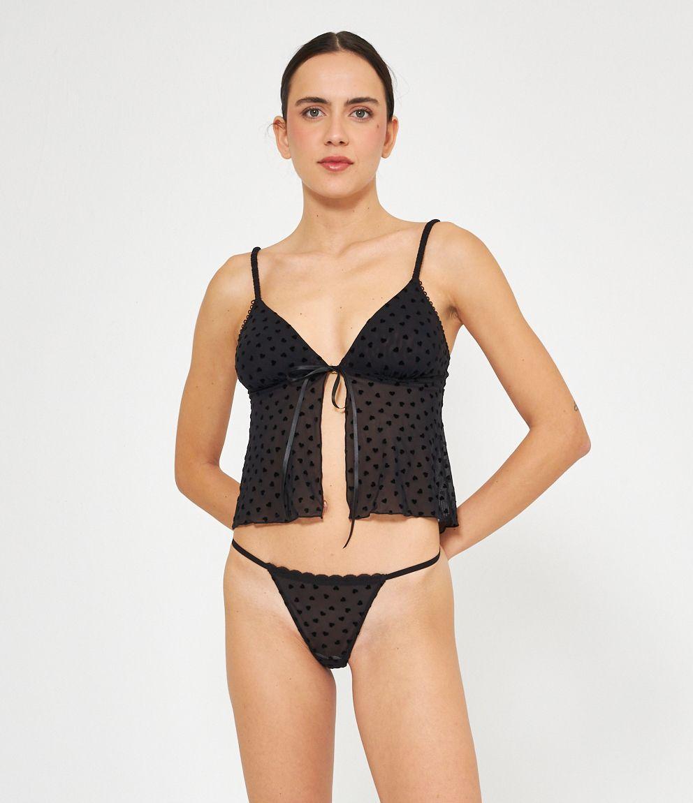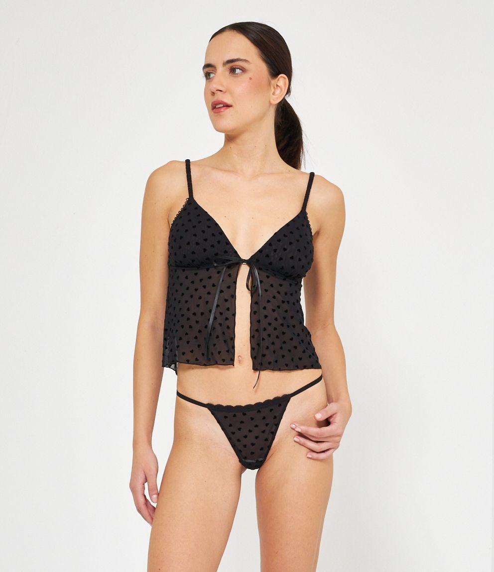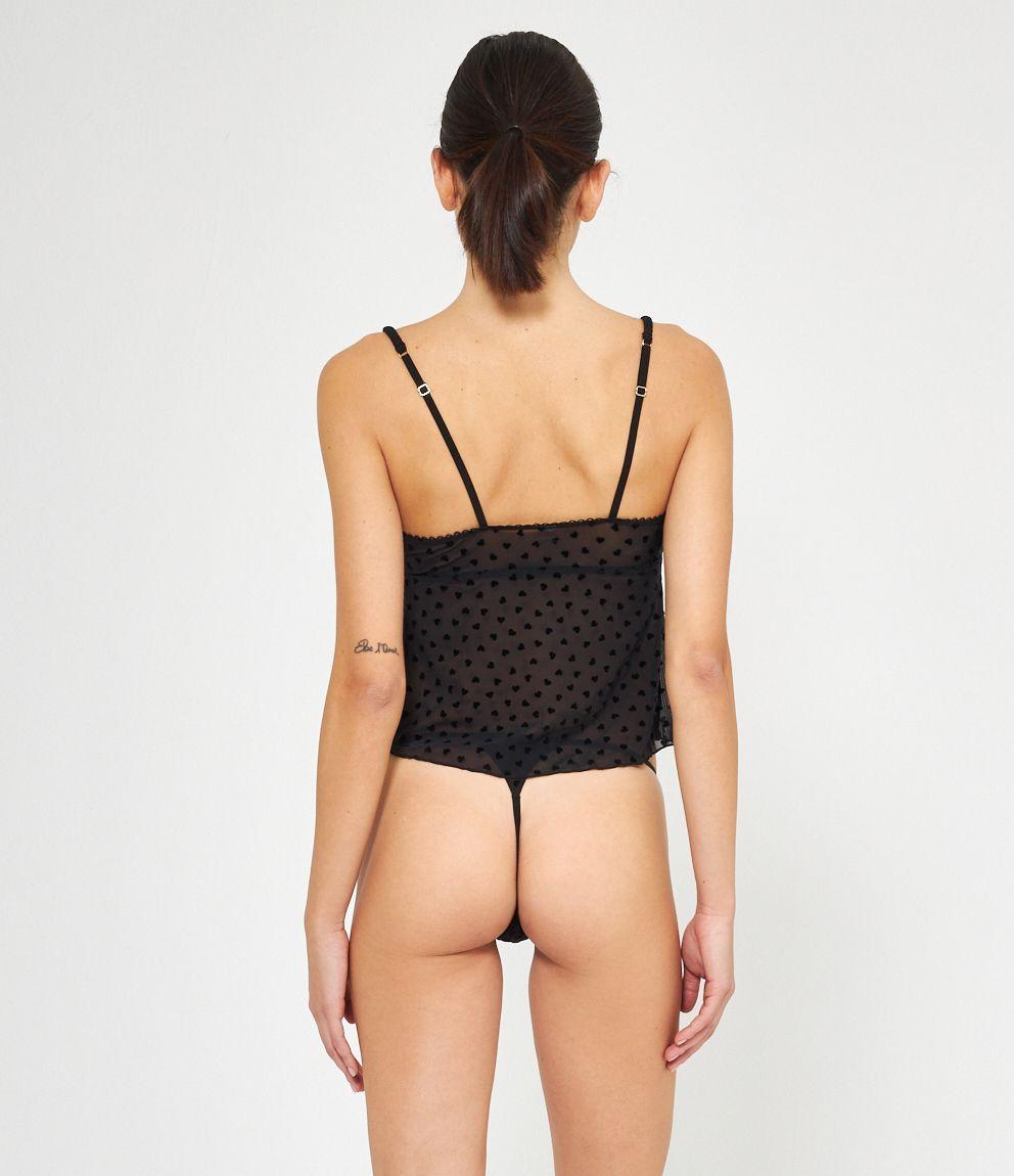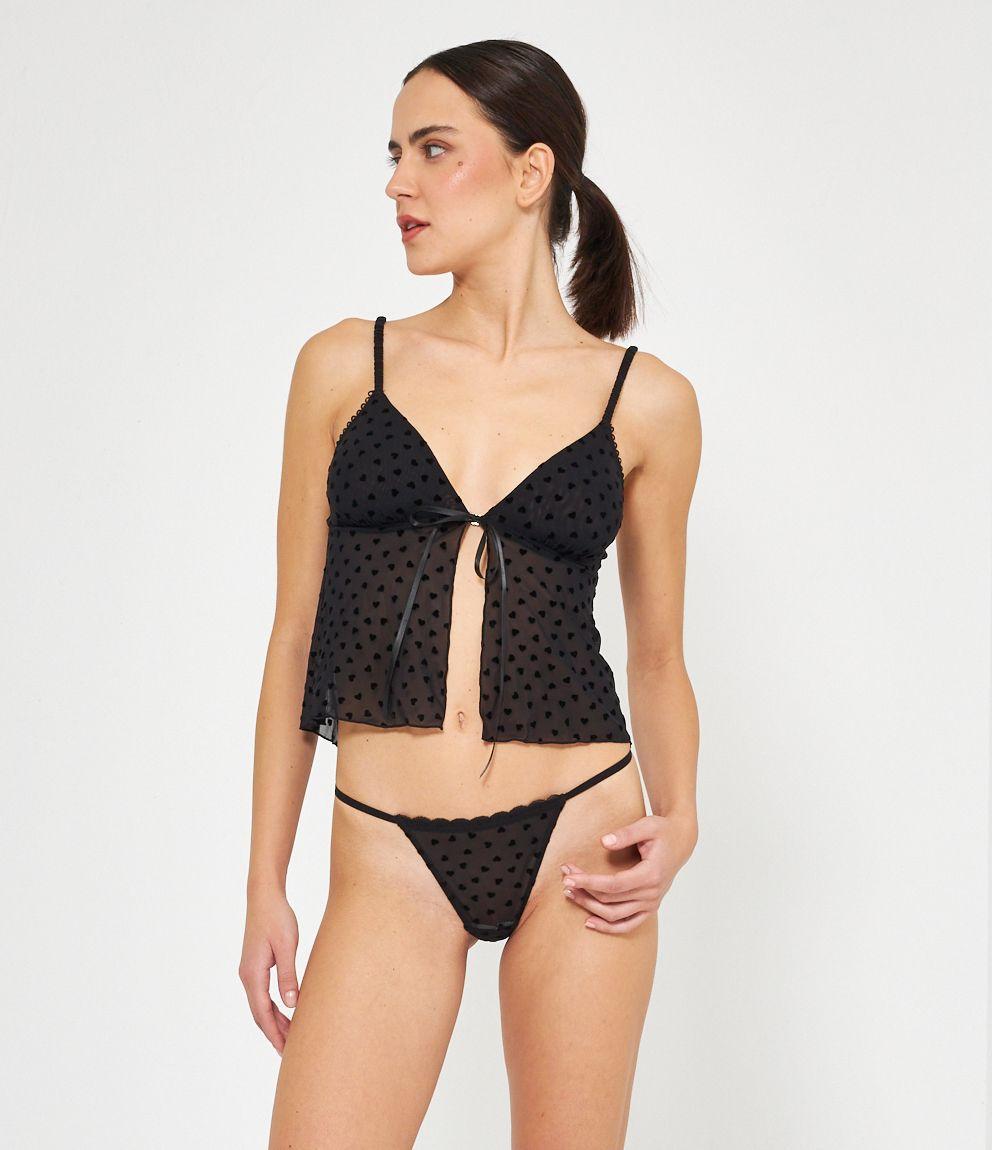Top in microrete con cuori a rilievo e bretelle regolabili.