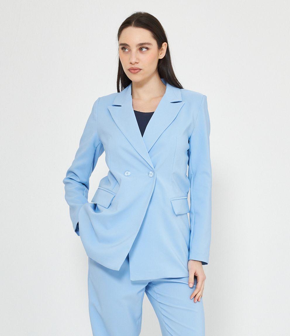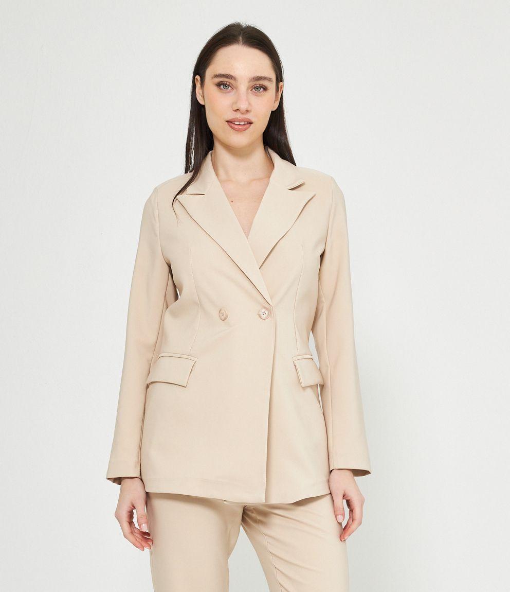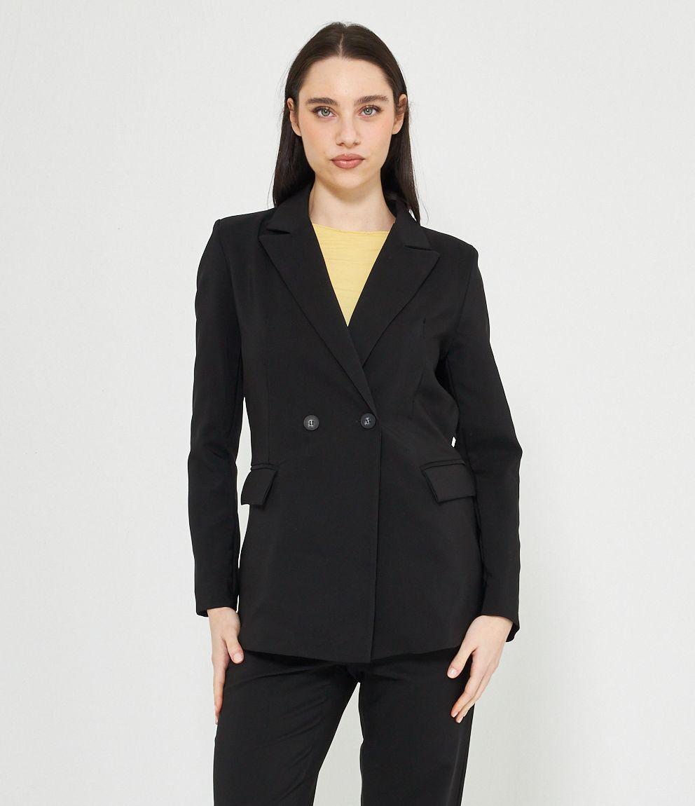 Blazer a doppiopetto con collo reverse chiusura con doppio bottone.
