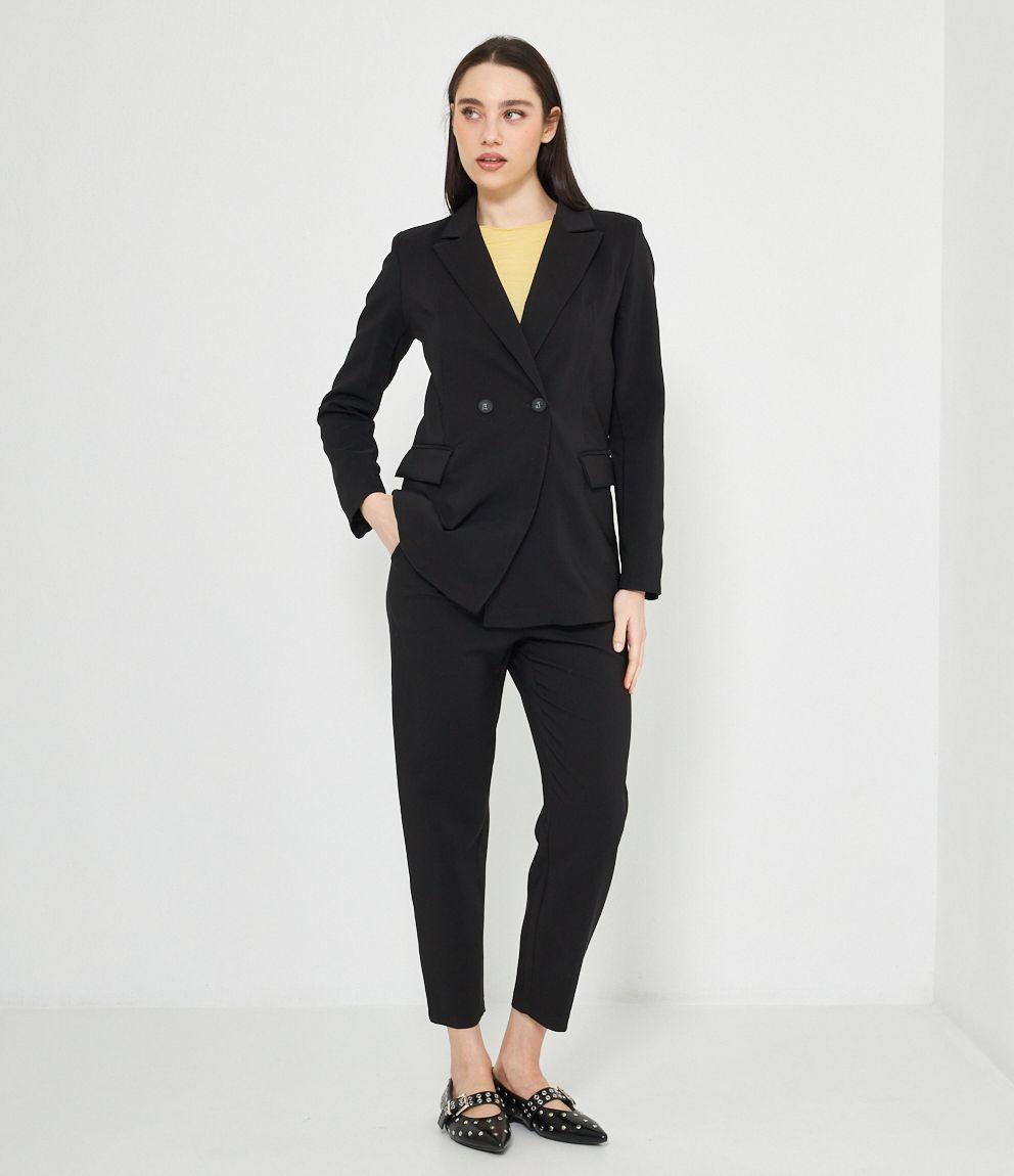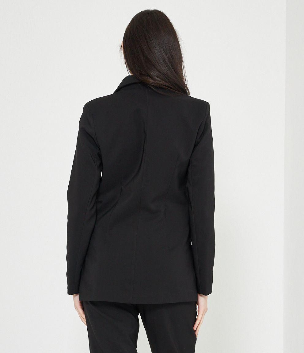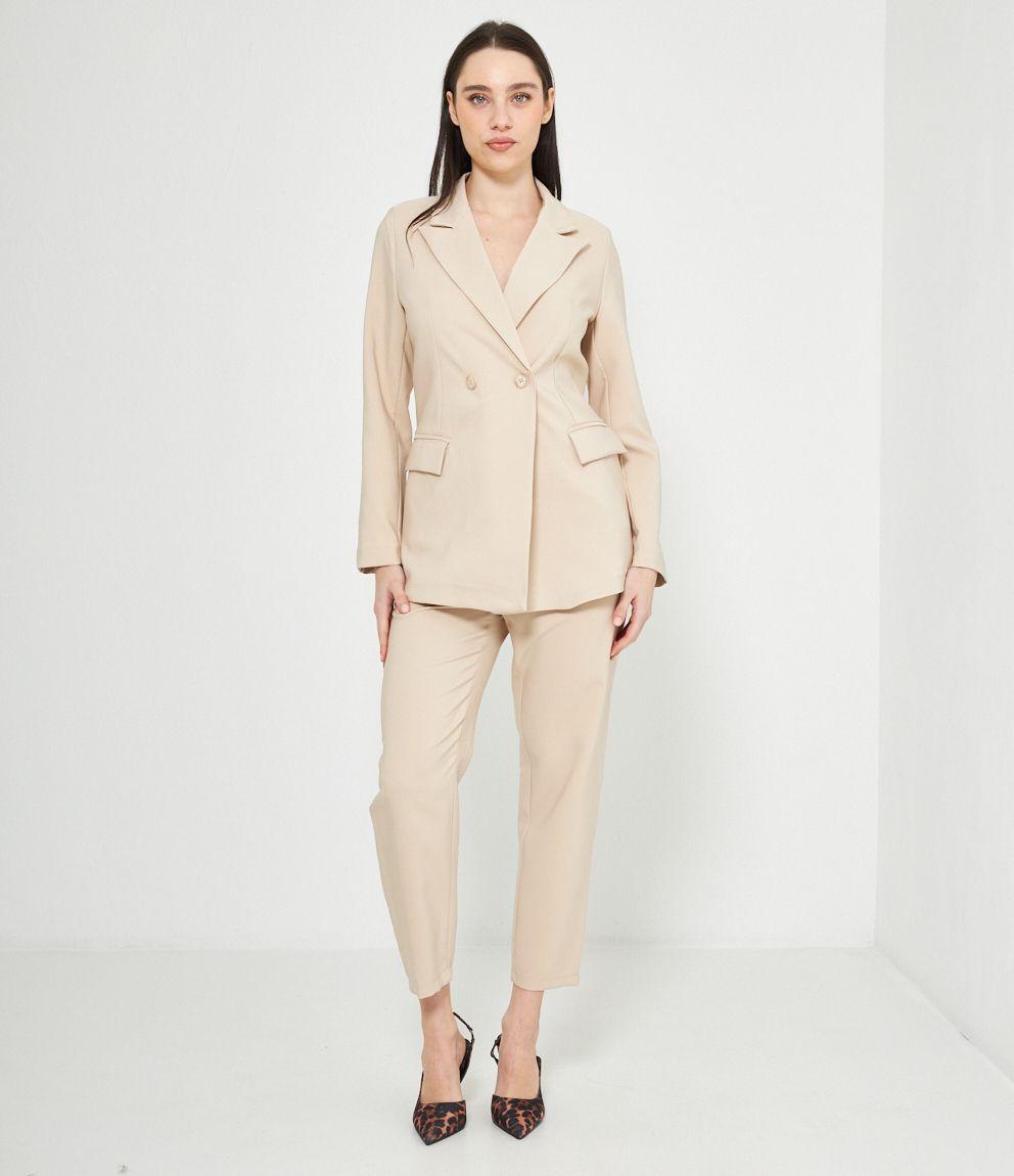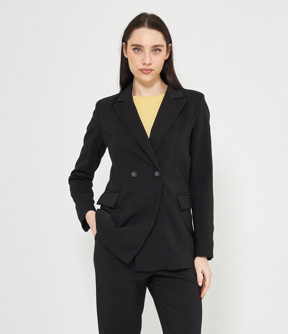 Blazer a doppiopetto con collo reverse chiusura con doppio bottone.