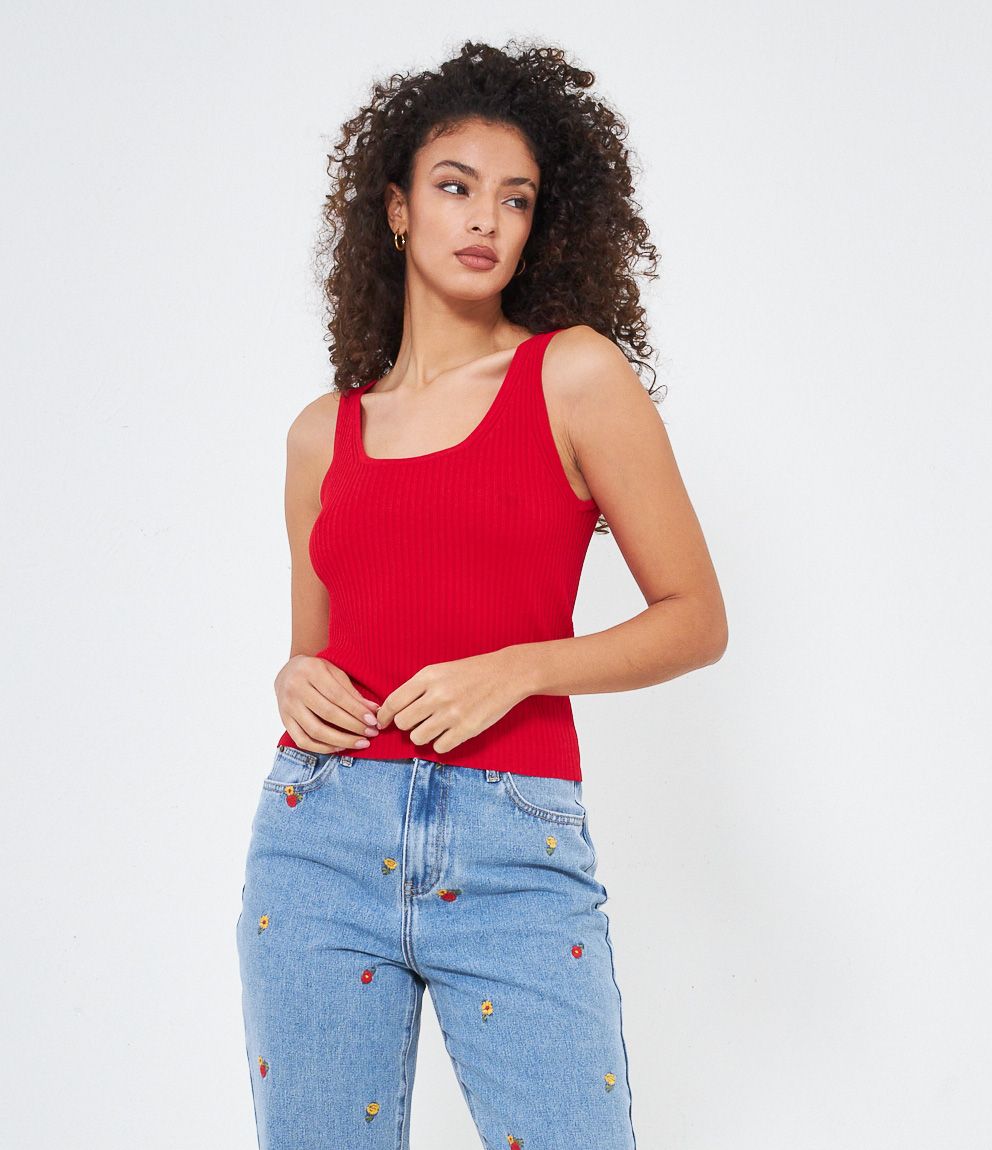 Canotta in viscosa a costine. Regular fit con ampio scollo su fronte e retro.