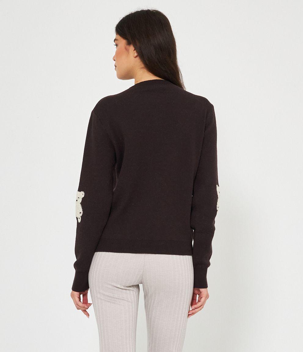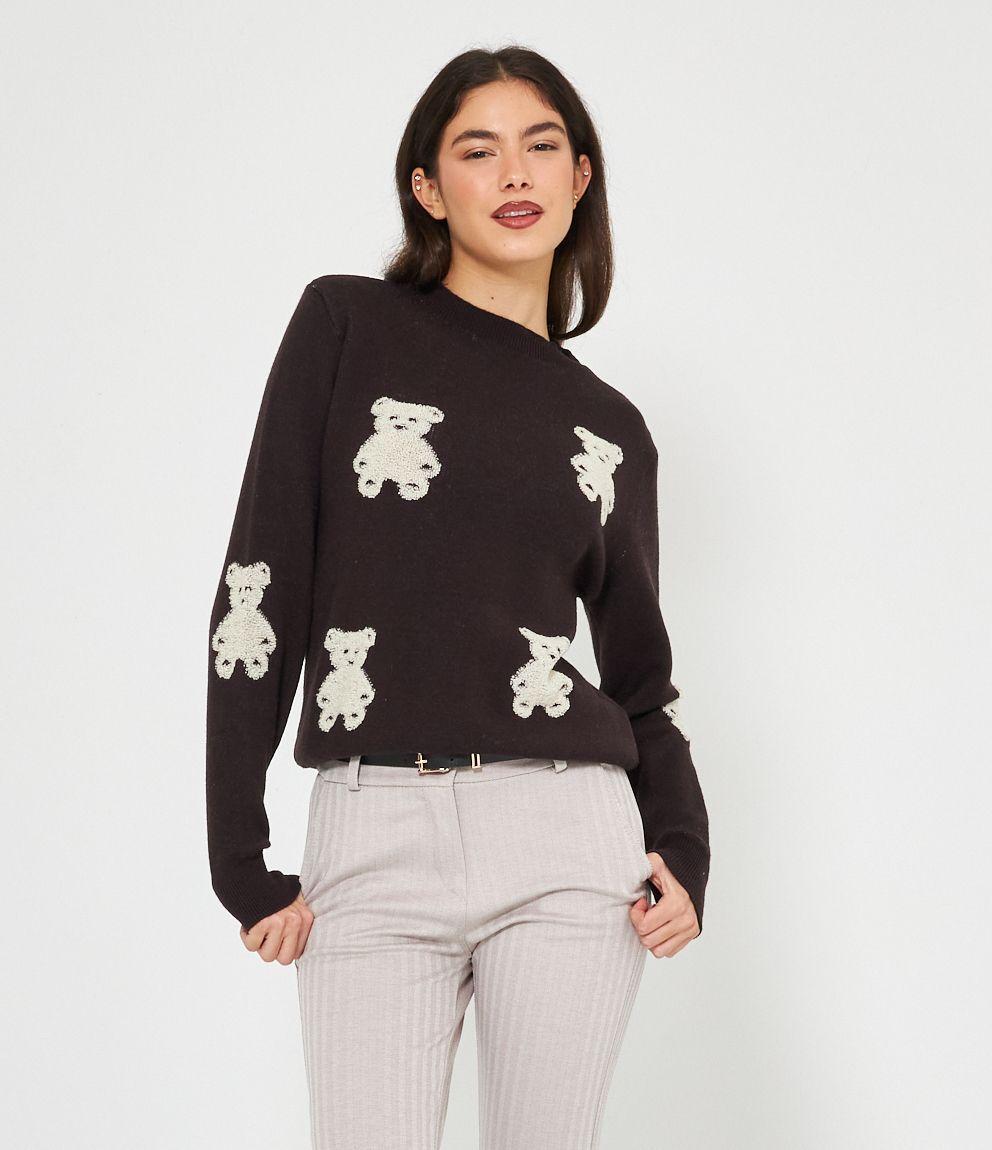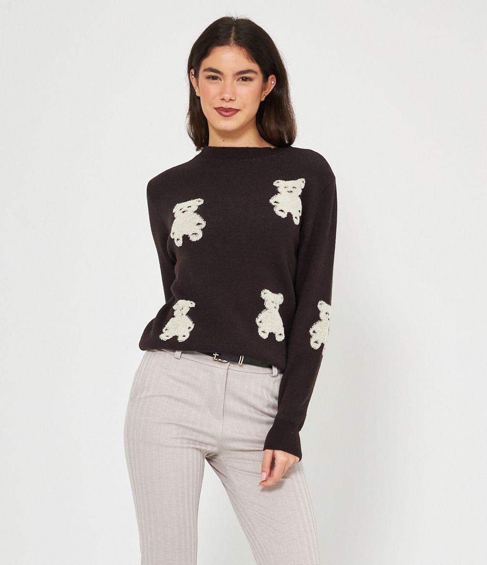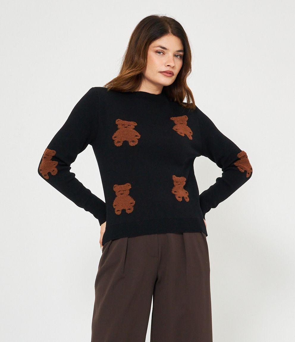 Maglia in viscosa con orsi a rilievo, girocollo e bordi a costine.
