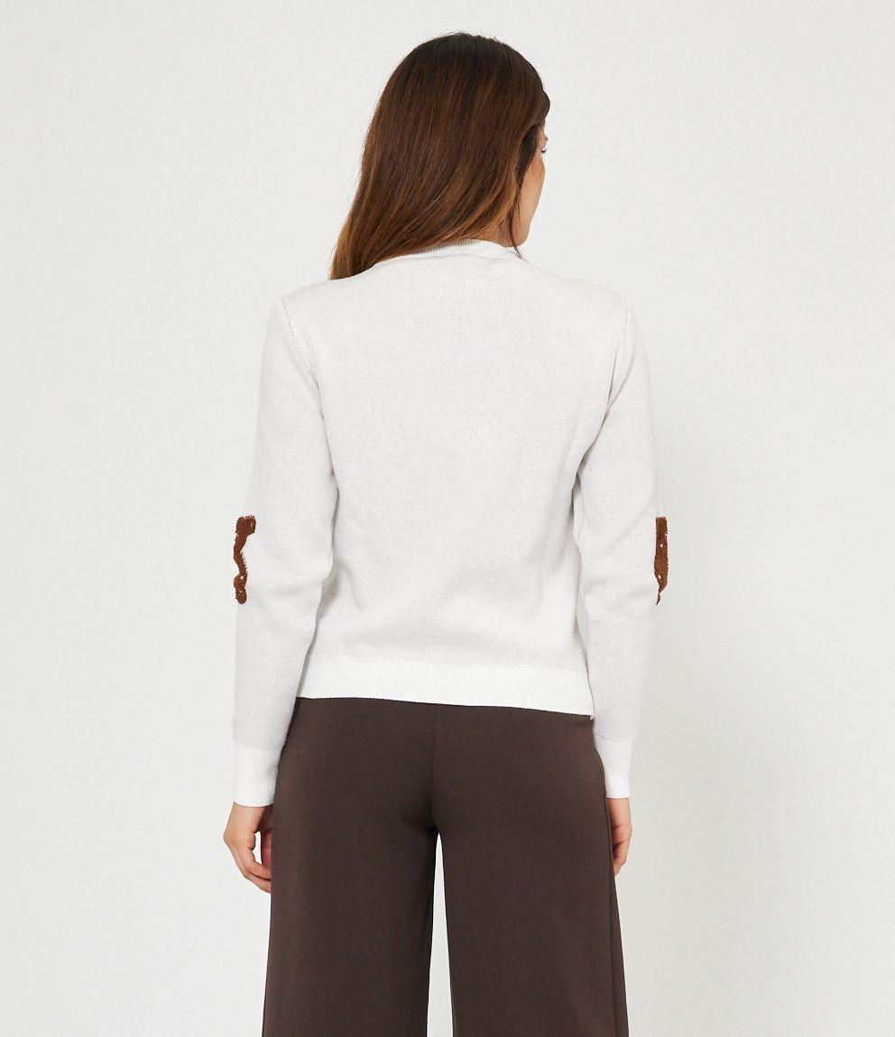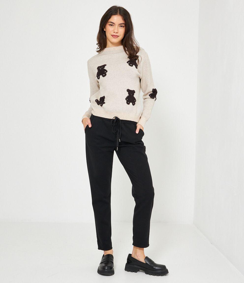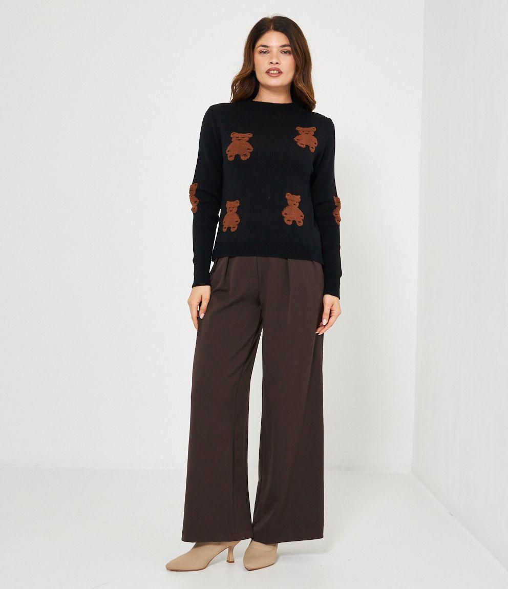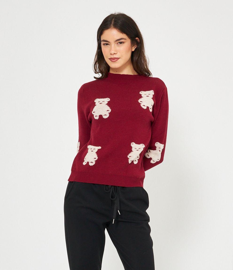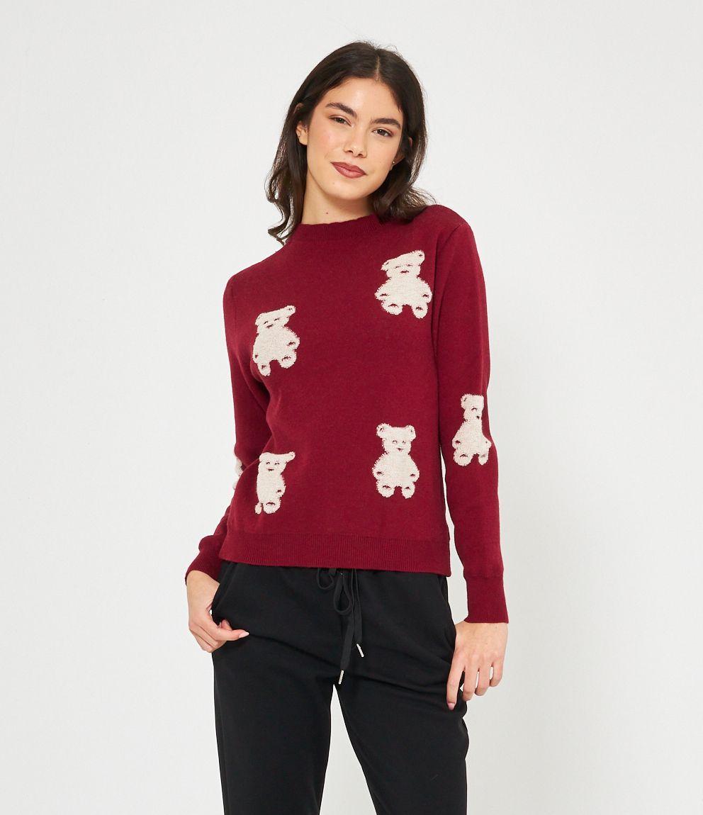 Maglia in viscosa con orsi a rilievo, girocollo e bordi a costine.