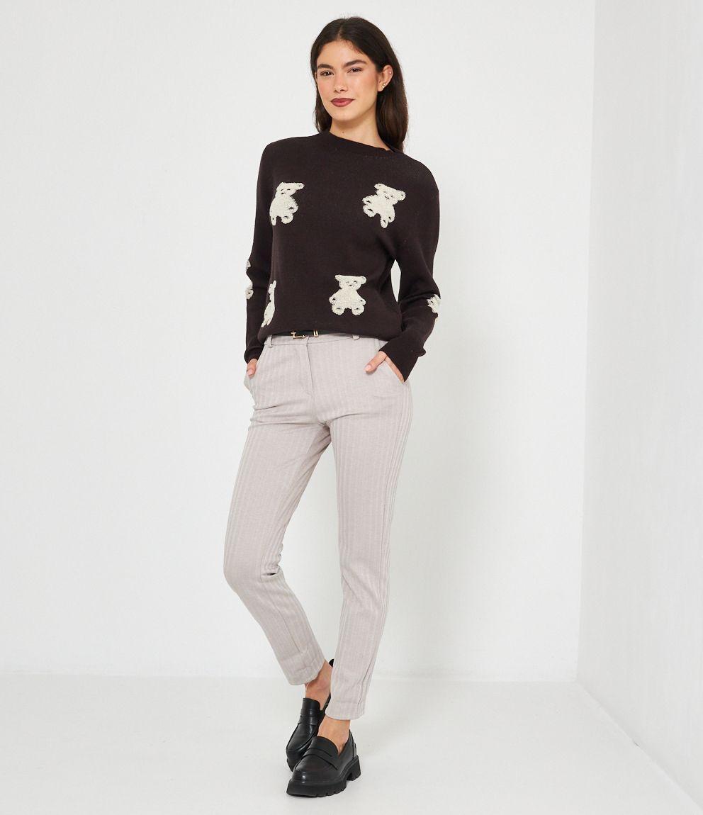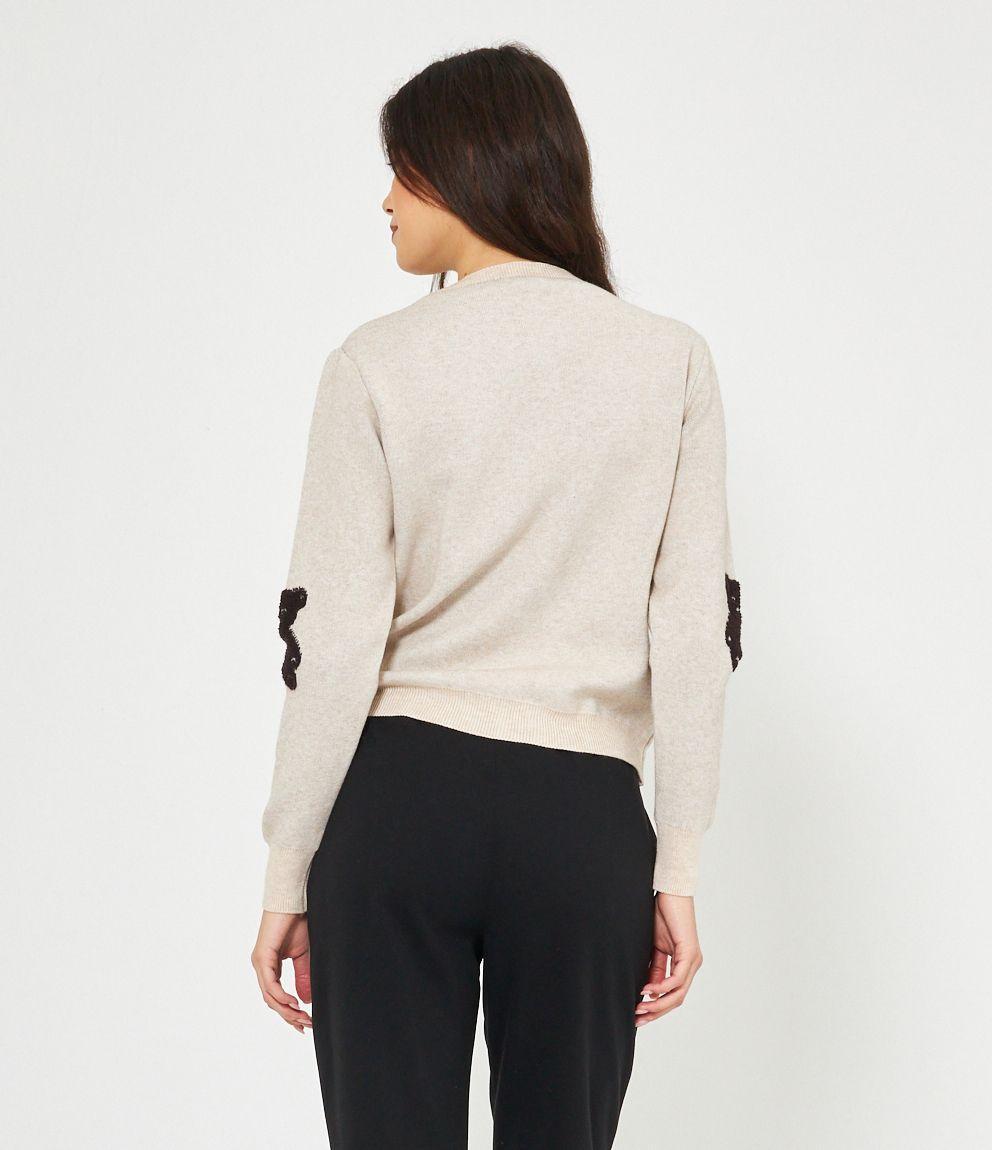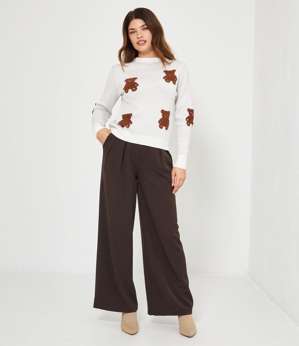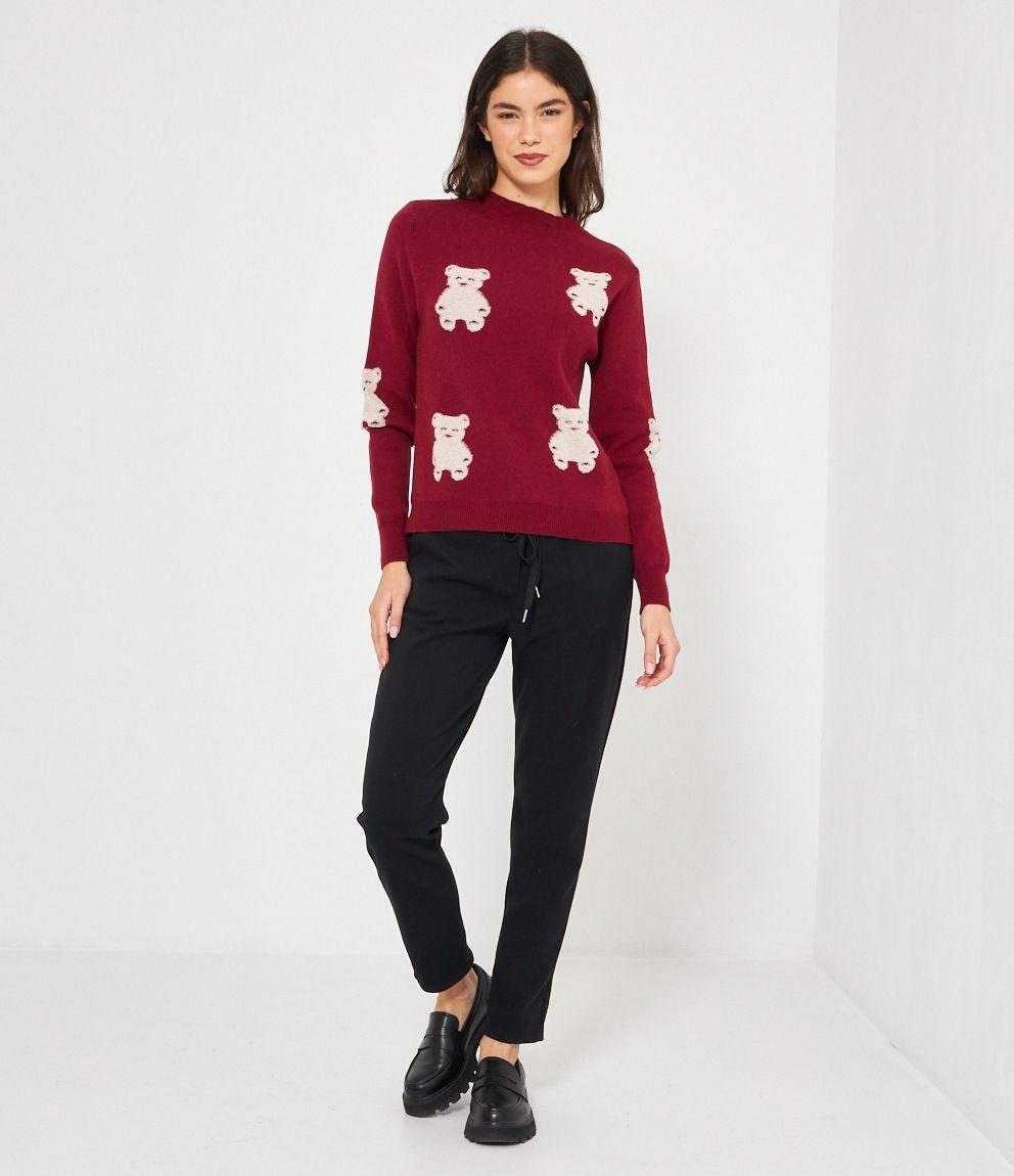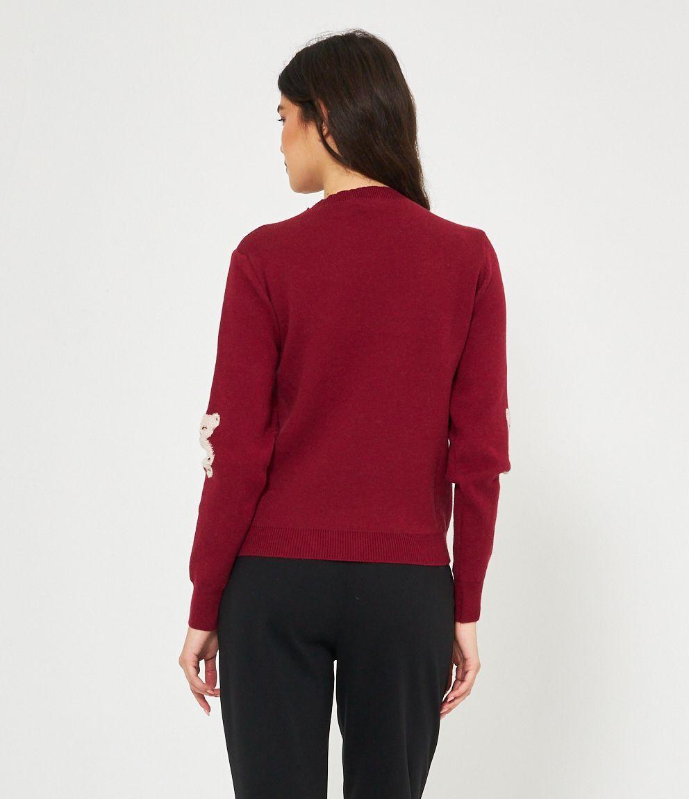 Maglia in viscosa con orsi a rilievo, girocollo e bordi a costine.